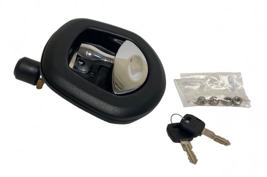 内容物:ドアラッチ本体、キー2本、取り付けナット等